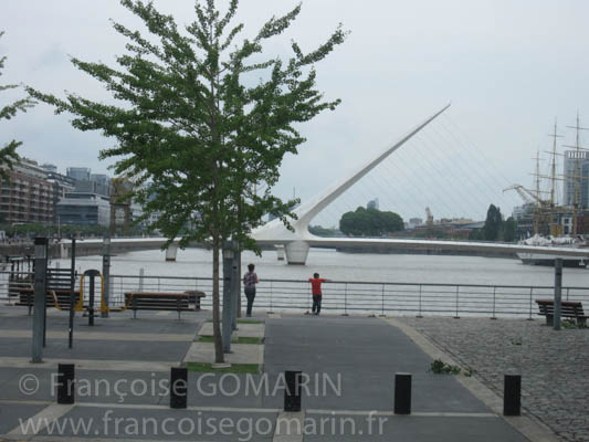 Je vous emmène une nouvelle fois en promenade dans Buenos Aires, vers un quartier portuaire beaucoup moins populaire que celui de La Boca : Puerto Madero connu pour ses immeubles modernes. C’est le quartier le plus résidentiel de la ville, il compte les édifices les plus prestigieux et surtout les plus onéreux de la capitale argentine. Construit au milieu des années 1990, on reproche à ce quartier d’être sorti de terre pour blanchir de l’argent ce qui explique que de nombreuses tours du quartier sont partiellement vides bien qu’officiellement totalement vendues.
