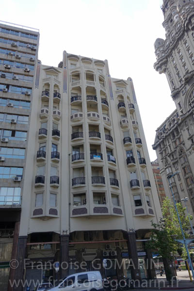 • à l’un des angles de la place, vous voyez ça :C’est le Palais Salvo, bâtiment emblématique de la ville avec son style caractéristique (qui n’en est pas un habituel). Objet de nombreuses critiques de la part des architectes du début du XXème siècle, il fut le témoin des événements qui ont marqué cette ville, il en est le symbole (j’y reviendrai dans un billet spécial).