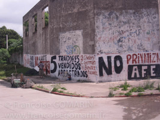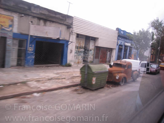 Près du port de Montevideo, bien que plus »discrète », la misère est visible. Je n’ai pas osé photographier les logements délabrés (il y avait des habitants) ; les murs vous donnent une idée.