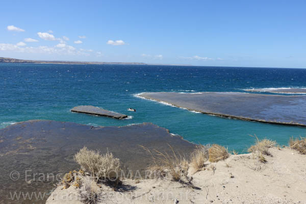 La Péninsule Valdés est une presqu’île reliée au continent par une frange de terre très étroite, longue de 35 kilomètres, appelée Istmo Ameghino.