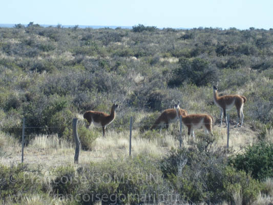 Il y a des habitants dans l’eau mais dans les terres aussi ; voilà des guanacos, des camélidés, de la même famille que les lamas mais ces guanacos ne sont pas domestiqués. Ils courent dans les prairies et croisent d’énormes lièvres ainsi que des troupeaux de moutons.