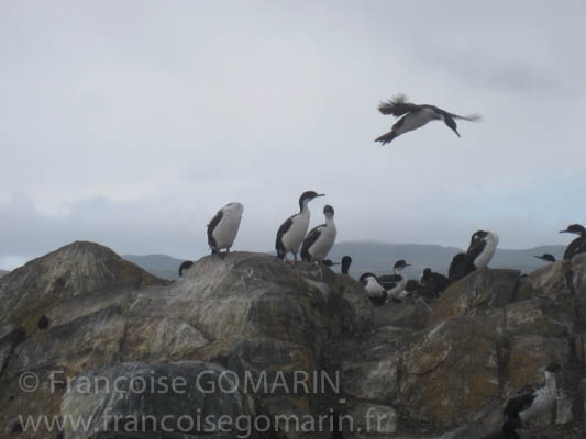 Je ne peux pas faire un inventaire complet de la faune et de la flore locale mais vous présenter ce que j’ai vu ou aperçu et dont je me souviens. La faune marine est la plus difficile à rencontrer j’ai tout juste aperçu des dauphins (pas des dauphins de Commerson mais des dauphins communs). J’étais en bateau mais pour les orques, baleines ce n’était pas la saison. L’observation dans cette région du monde se fait de juin à décembre (je suis venue en janvier : loupé ! Heureusement, j’ai vu plusieurs fois des baleines en Afrique du Sud).