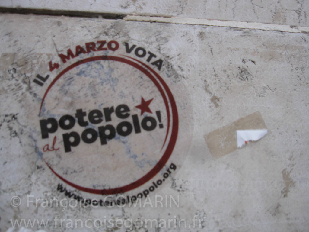 Traduction : le 4 mars votez, le pouvoir au peuple.