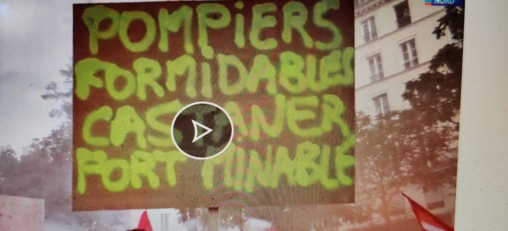 Regardez ces images prises pendant la manifestation des pompiers, pompiers qui ont été arrosés, repoussés, frappés comme de véritables voyous, aussi affreux que les Gilets Jaunes ostracisés maintenant.