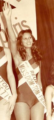 En 1977, Evelyne Pongérard devient Miss DOM TOM. Pas possible d’avoir deux « miss France » successives venant de la Réunion.  Par dérogation spéciale, elle participa au concours de miss Univers.